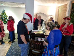 A raffle helped raise funds for future lunches and other community good causes. Special thanks go to B for her tremendous effort selling raffle tickets, supported by Donna.