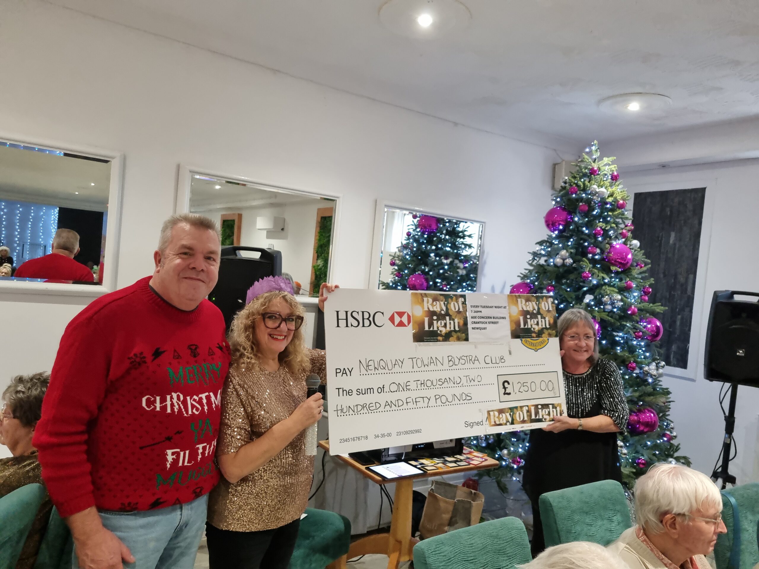 Jill Barnard & Paula Marcellis from Ray of Light presented a cheque to Towan Blystra Lions for £1250 which has been collected by her over the year. President Jon Collins gratefully received