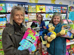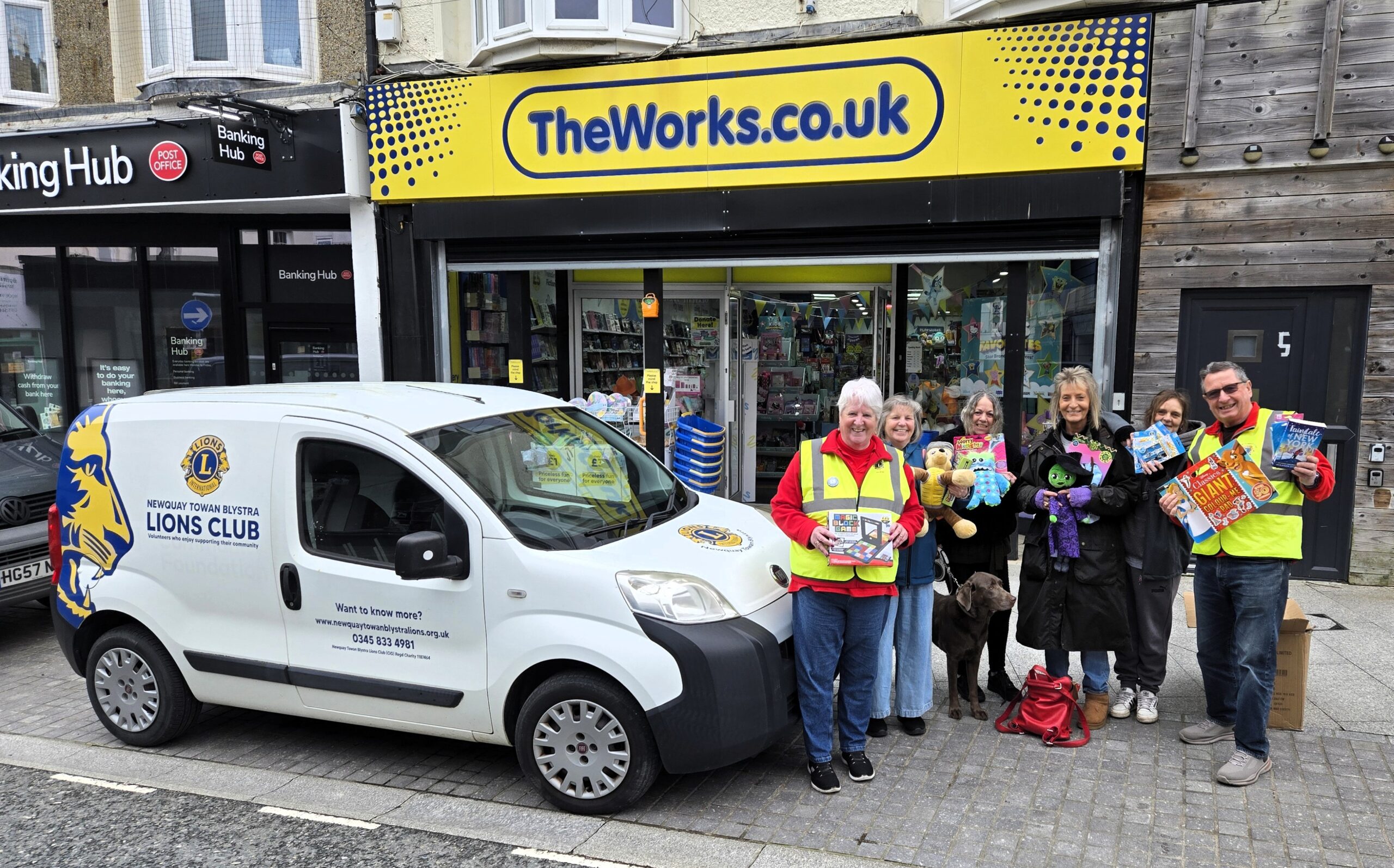 Vicky, Store Manager of The Works in Newquay, recently invited members of Newquay Towan Blystra Lions to collect a generous donation of assorted gifts from the store. The donation included a variety of books, stuffed toys, and games.