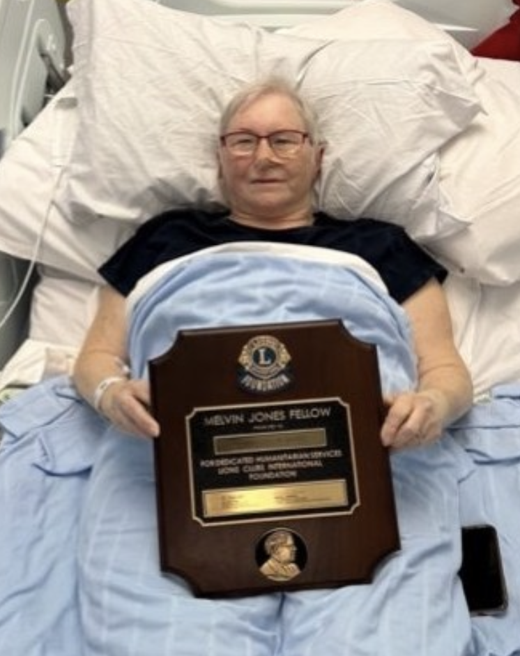 When I took over as President in July I was given the privilege of being able to award an MJF to one of our members over the course of my two year tenure in the role. For me there was one outstanding Lion, who in my opinion should have received the award some time ago and that was Lesley. As I mentioned in our last meeting at the Griffin, I would have wished to present the award at an appropriate occasion, however following Lesley’s diagnosis only a matter of weeks ago we decided that there was no time to lose and Lesley was presented with her MJF at Treliske Hospital.